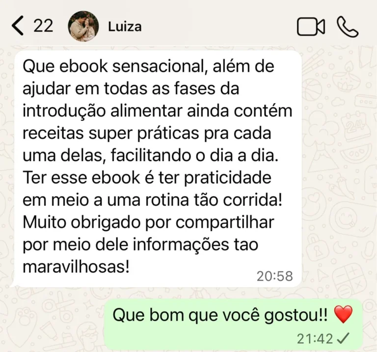 Nesse guia, você aprende exatamente o que oferecer, quando oferecer e como oferecer, sem achismos, sem medo e sem insegurança, descubra o que pode e o que não pode, a quantidade correta e as texturas ideais em cada fase, para alimentar seu bebê com tranquilidade desde o primeiro dia